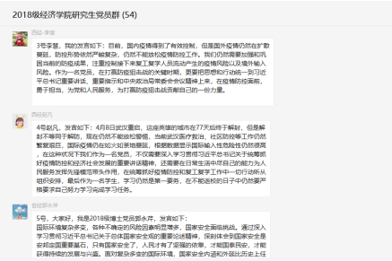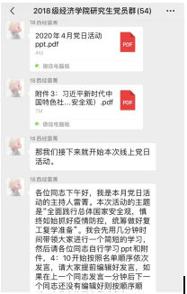 2020年4月9日下午15点30,澳门永利yl67762018级研究生党支部开展了4月份党日学习活动,主题为“全面践行总体国家安全观,慎终如始抓好疫情防控,统筹做好复工复学准备”。由于疫情的原因,本次党日活动采取线上开展的形式,由雷菁主持,全体支部党员参与。